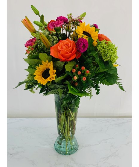 Our designer choice pretty fall mix of our freshest seasonal flowers. Flowers may vary from the picture. This is a designer choice arrangement - each one will be unique and different from the picture shown.